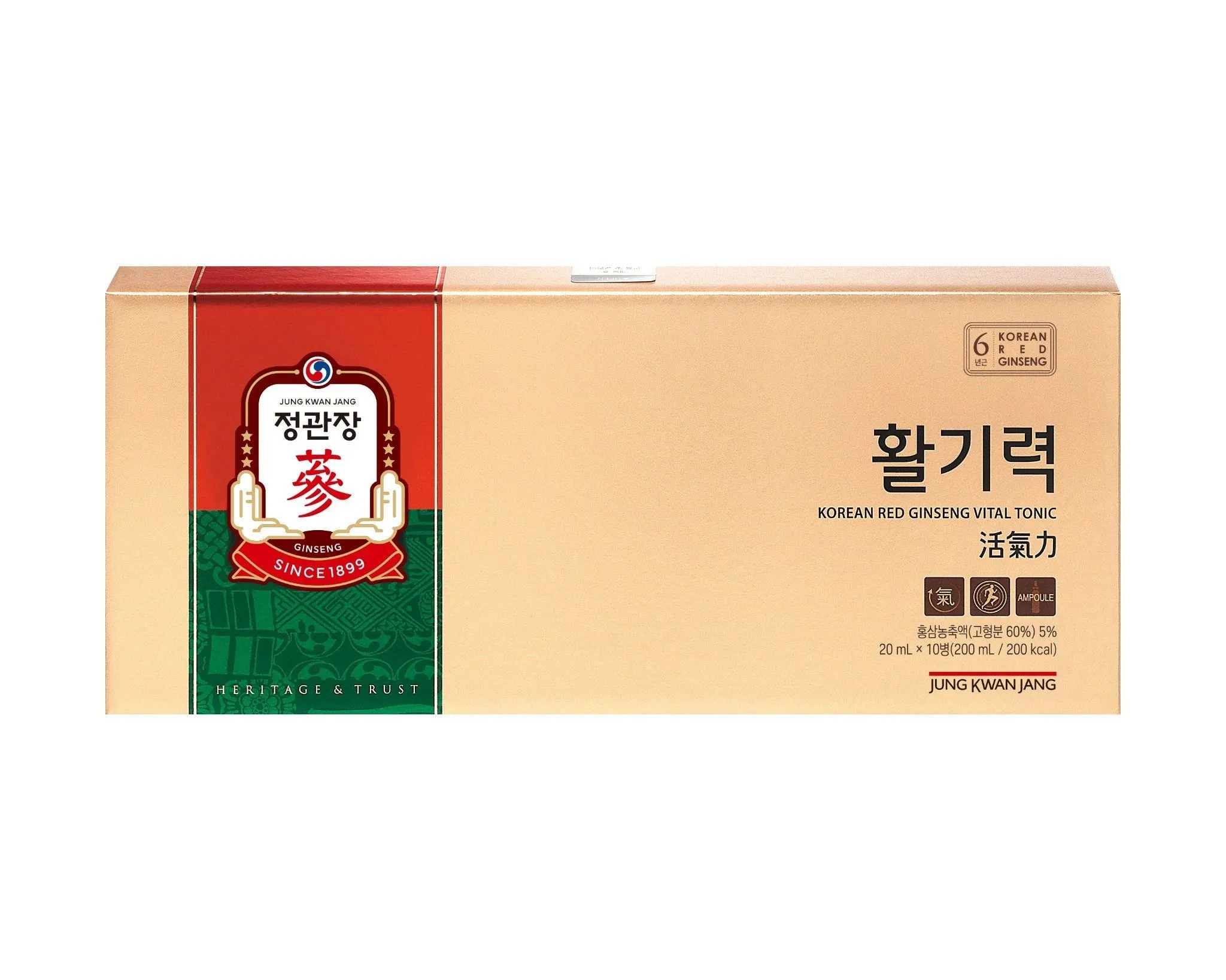 Nước hồng sâm Vital Tonic KGC Jung Kwan Jang 20ml x 10 ống dạng nước đựng trong ống nhỏ gọn dùng cho mọi lứa tuổi, vị đắng nhẹ nên rất rễ sử dụng. Nước hồng sâm Vital Tonic 10 ống được chiết xuất từ hồng sâm nguyên chất 6 năm tuổi của tập đoàn hồng sâm chính phủ KGC. Mỗi ngày 1 ống để tăng cường sức khoẻ cho những người luôn bận rộn... có thể đem đi du lịch, tập thể thao, đi làm đi chơi rất tiện lợi, làm món quà biếu tặng người thân rất là ý nghĩa...